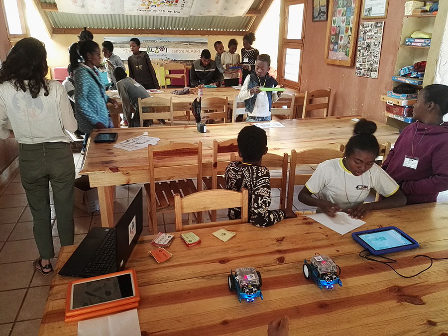 Le samedi après midi, des jeunes motivés découvrent le numérique et l'algorithmique de manière ludique avec Scratch, le robot mBot...