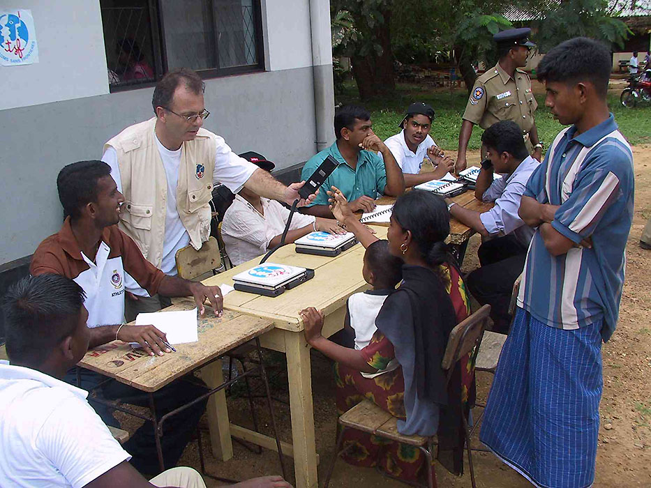 Les équipes de TSF se sont déplacées dans les refuges et les lieux de vies communautaires (écoles, mosquées, mairie…) dans les districts côtiers de Kalutara, Galle, Matara, Hambantota et Ampara pour permettre à la population de contacter leurs proches au Sri Lanka ou à l’étranger. L’information sur le service proposé par TSF était affiché et l’utilisation de mégaphones a été quotidienne – une partie de la population restant sur le lieu de leur domicile pour éviter le pillage des affaires personnelles qu’ils avaient pu récupérer après le passage du tsunami.