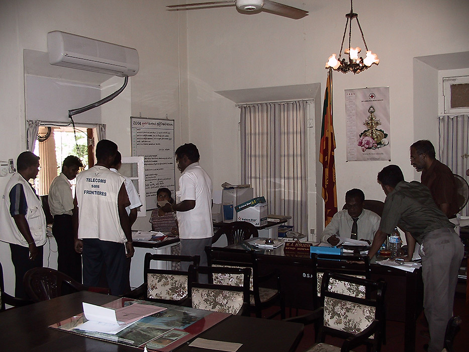 TSF a mis à disposition des ONG, équipes de secours et autorités locales, des lignes téléphoniques par satellite dans les centres de coordination des ONG dans les districts d’Hambantota dès le 29 décembre et à Matara à partir du 3 janvier. Ainsi la grande majorité des autorités ou des ONG ayant des besoins de moyens de communication ont pu bénéficier des services de TSF. Les équipes ont aussi apporté une assistance technique pour l’installation, la configuration de systèmes informatiques et satellitaires ainsi que la résolution de problèmes.