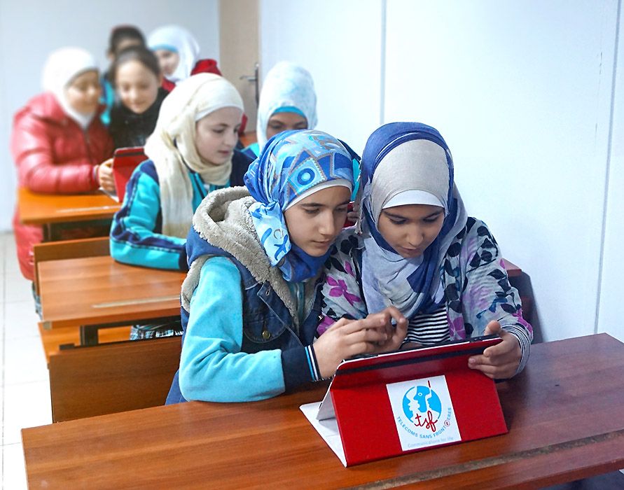 Les technologies investissent de plus en plus le monde de l’éducation. De son coté, TSF continue ses opérations de réponse d’urgence, notamment lors la crise Syrienne, mais ne peux pas rester les yeux fermés face aux besoins des enfants retranchés dans les camps de déplacés. L’Organisation décide donc d’utiliser son expertise en NTIC pour mettre en place des « centres mLearning » donnant aux élèves syriens, toujours accompagnés d’un professeur, un accès à des ressources éducatives numériques via des tablettes.