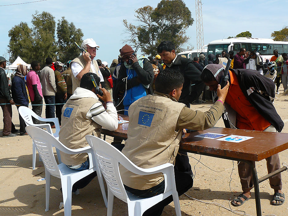 In the Choucha camp, TSF had to respond to the needs of migrant populations, who originally only were supposed to stay for a few days in, what was officially known as, "transit" camps. The situation turned out to be more complex, especially for people from sub-Saharan Africa, the camp becoming for many of them a longer-term stopover. The primary objective of TSF was to offer first calls, but we had to adapt our response to this more complex situation in order to best meet the expectations of the populations affected by the crisis.