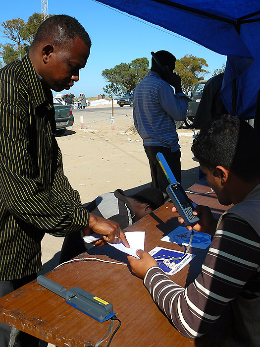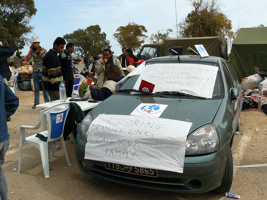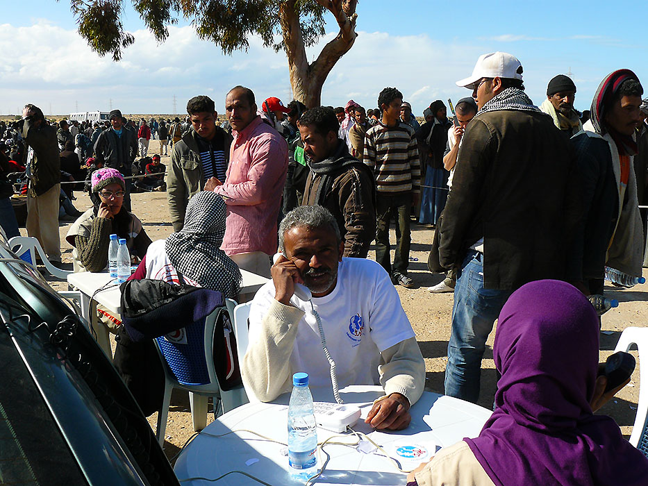 2,400 Libyan migrant and civilian workers fled Misrata and its bloody fighting and traveled to Benghazi by IOM chartered boats. On April 17, TSF participated in a joint operation with the ICRC to offer telephone calls to refugees in transit in the Libyan Red Crescent camp in Benghazi.