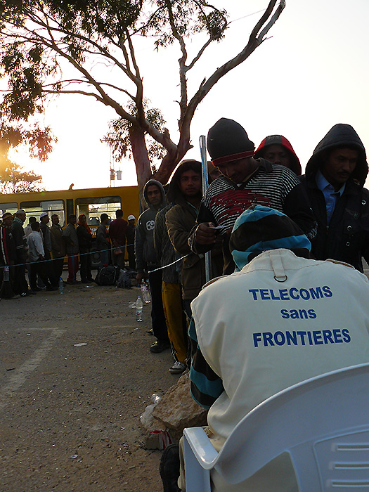 TSF conducted its humanitarian calling operations at the Choucha camp from February 25 to May 12. 30,550 refugees benefited from this activity. The needs of these people in great distress were immense; long queues formed daily to make a priority call.